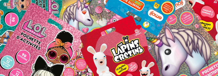 Pochettes d'activités, coffrets cadeau, carnets, cahiers de vacances…